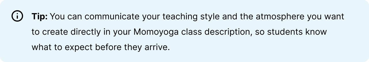 - The class schedule and location (add this in Momoyoga’s Location field).