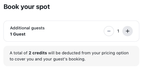 When a yogi adds a guest, the system will automatically deduct an extra credit from the yogi’s class pass or membership. If the yogi doesn't have enough credits, they can purchase additional credits by buying a new class pass or membership, allowing them to bring the guest.