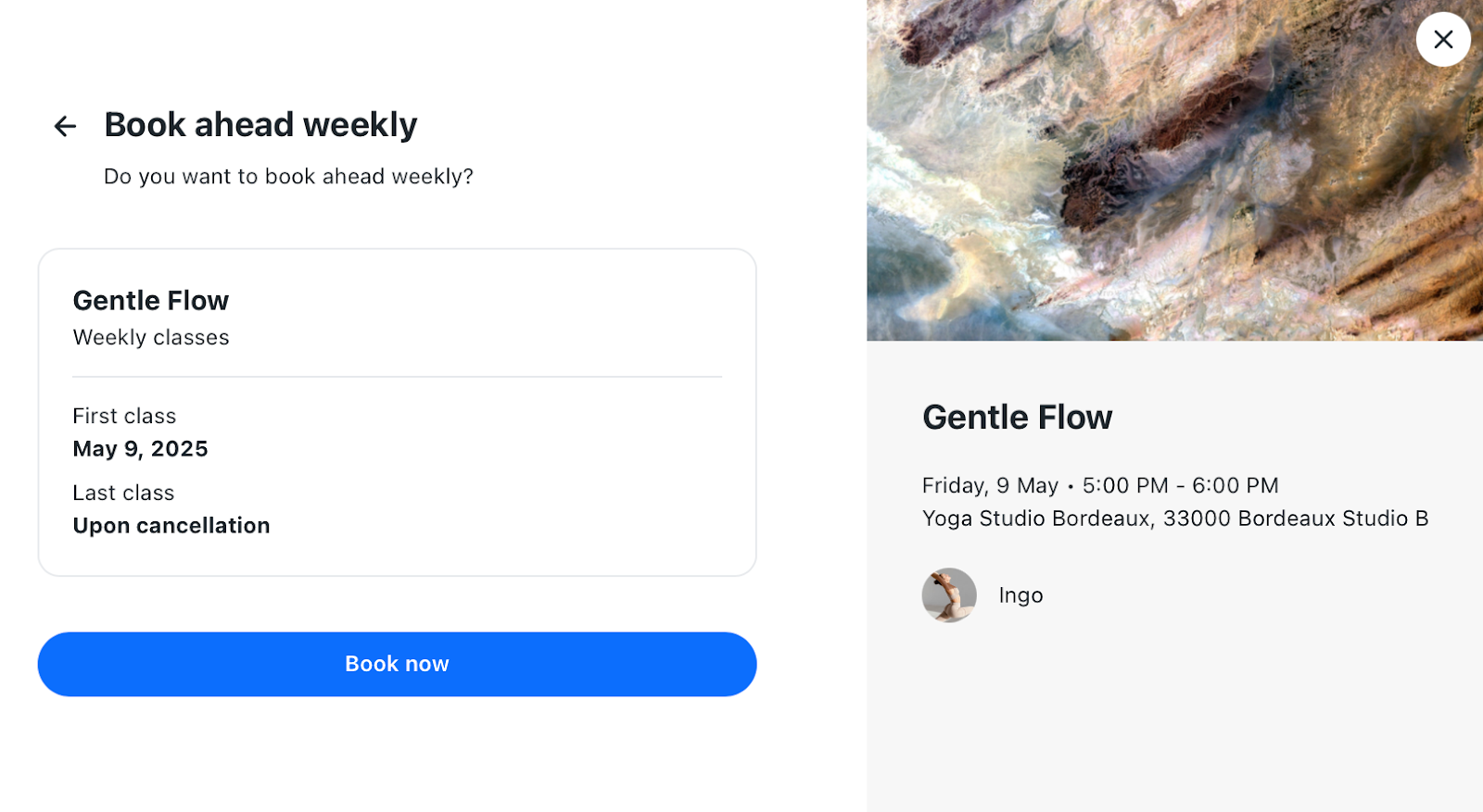 - Net als studio's kunnen yogi's nu wekelijks vaste lessen reserveren. Dankzij deze functie kunnen je yogi's gemakkelijk lessen van tevoren reserveren en worden hun credits automatisch aangepast.